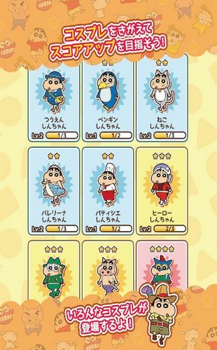 蜡笔小新酷跑日文版是一款好玩的休闲益智角色扮演跑酷游戏,玩家在游戏中能体验到蜡笔小新原漫画的游戏体验,整个游戏高度还原了蜡笔小新住宅,伙伴,及生活的地方,玩起来十分的轻松解压,喜欢蜡笔小新酷跑日文版的玩家赶快下载玩玩吧!
