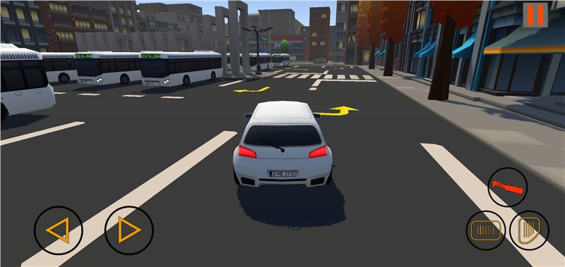 3、操作方式简单易上手,左侧的方向控制按键,结合油门的前进与刹车+倒车操纵,大致上能满足不同玩家群体的要求。并且游戏内的车辆也是非常多样,车型覆盖范围包括了轿车、suv、卡车和超级跑车,收集并尝试驾驶各种车辆来完成挑战任务!