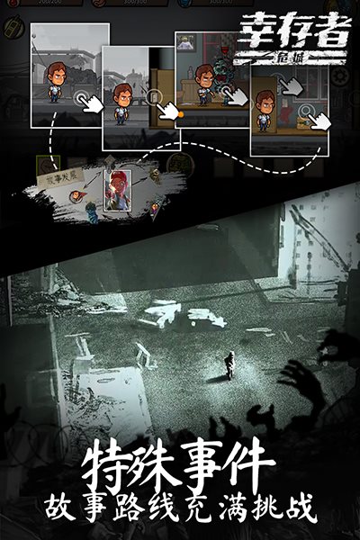 幸存者:危城的建筑群暗藏玄机,写字楼、公寓、商场、警察局等建筑能为幸存者提供丰富的物资资源,每种建筑各有三种关卡难度,如果能成功探索高难度建筑,幸存者们一定能获取一笔不斐的报酬。在力量还不够庞大时可千万别被物资花了双眼,硬闯高星级难度的建筑,里面僵尸的强度和数量很可能会要了幸存者们的小命。在末日中,“惜命如金”的谨慎态度才能让幸存者在残酷末日里更好的生存下来。
