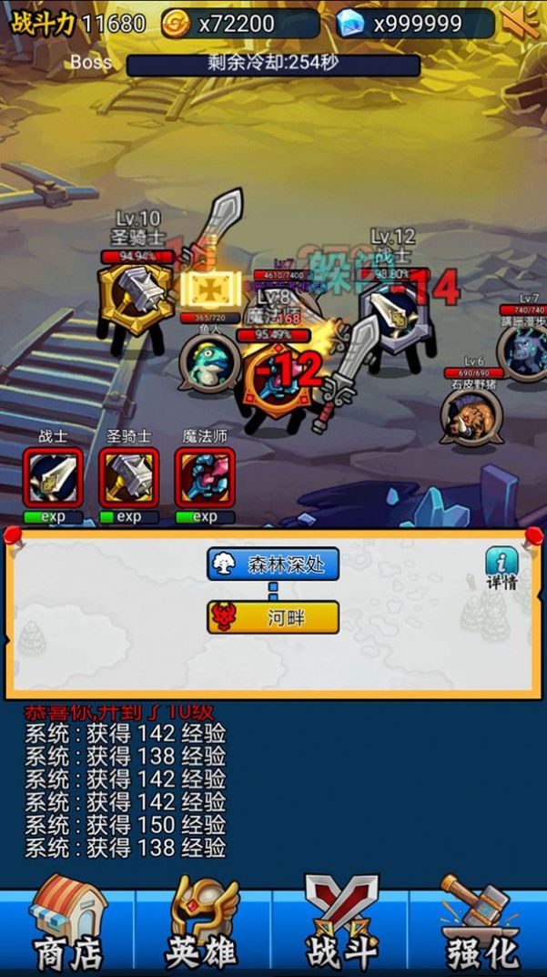 2、游戏采用无需操作的放置战斗,派出你的英雄小队,你的英雄将为你自动战斗;