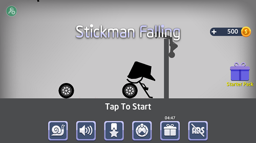 3、活用按钮,左边的按钮是让车减速或者后退的,右边长条的按钮是加速前进的,而有汽车标志的是让车重新从空中落下的,反复使用这三个按钮可以让火柴人受伤更多