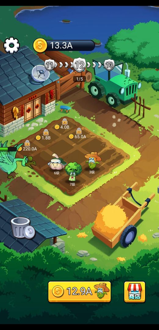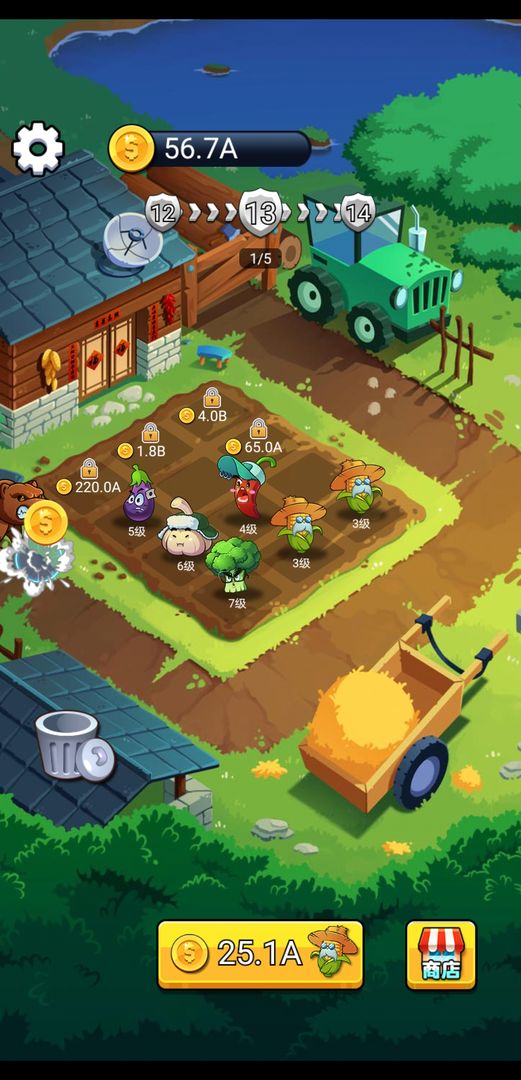 3.玩家通过合成,来解锁高阶蔬菜,提升自己的战斗力,对抗动物入侵。