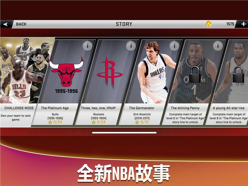 进行5个全新NBA故事模式游戏,细细品位著名NBA球星和球队的历史。