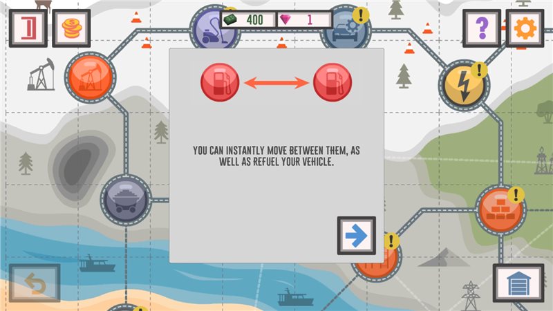 然后的话点击那些建筑图标,会有两个,蓝色的是拿货,红色的是交货,可以赚钱。