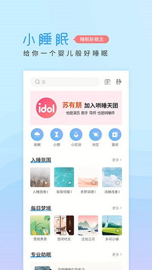 1.小睡眠手机版可以跟你对话的精致音乐。这种歌声很温馨,让你感到很温暖,就像是躺在柔软的云朵床上,让你能睡得更香;