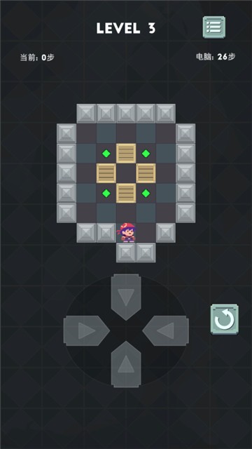 2、每个等级都是一个随机的封闭空间,由随机分布的若干个箱子和目标点组成。