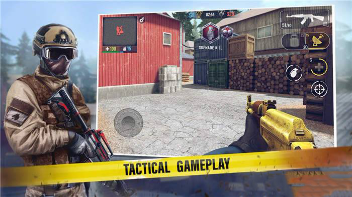 2、真实的射击和打斗体验,采用第一人称视角,结合3D高清画质,还有各式各样的道具发挥武器优势,策略性的狙杀敌人。