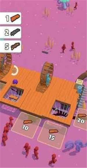 木筏丧尸是一款画风非常简单的休闲挑战游戏玩家在这中要不要断地滚动基地,你需要通过不断的手机各种各样的资源来升级你的战车,不断扩大基地打造设备,时刻注意丧尸的到来,完成大量游戏任务消灭所有僵尸,站在木筏上使用武器攻击丧尸。
