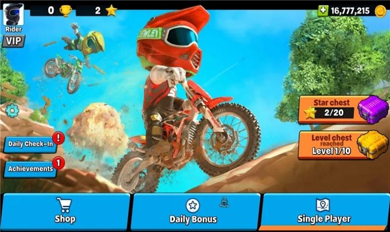 极限摩托车狂热是一款经典的摩托车竞速游戏,玩家需要骑行摩托车在各种复杂的赛道上进行竞争。游戏的高度可玩性和刺激感吸引了众多玩家的喜爱。总而言之,并能在比赛中与对手进行竞技,而随着赛事的增多,可以逐步提升赛车级别,开启更多赛道、进行更大程度的挑战,同时还有世界排行榜,能让你查看世界顶尖选手的战绩,提升自己的竞技水平。