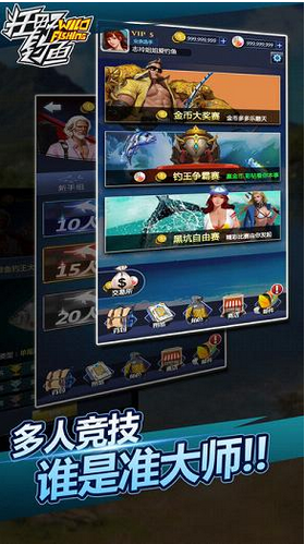 狂野钓鱼是一款多人钓鱼竞技游戏,提供多人在线钓鱼竞赛,100人钓鱼大PK,为鱼友提供一个开放的论坛,分享钓鱼方法,通过比赛获得古鱼,古鱼可以交换捕鱼道具,单打独斗,竞争垂钓,到底谁将成为新一代垂钓之王?最现实的钓鱼比赛,具有多个多人在线PK模式,我等着你来挑战。