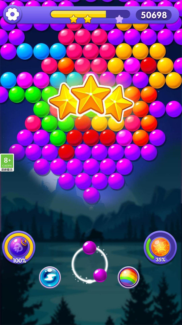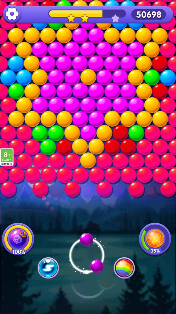 2、你可以在游戏中收集并解锁各种泡泡皮肤和背景,个性化你的游戏体验。
