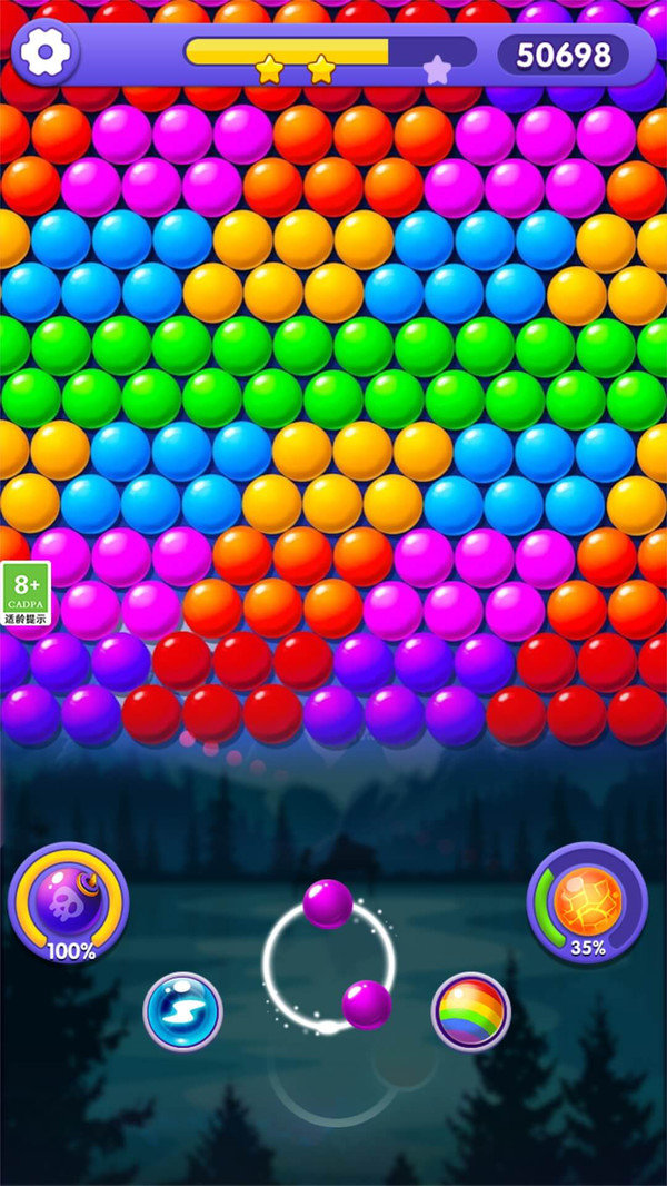 4、支持在线排行榜,你可以与全球其他玩家一较高下,展示你的泡泡龙技艺。