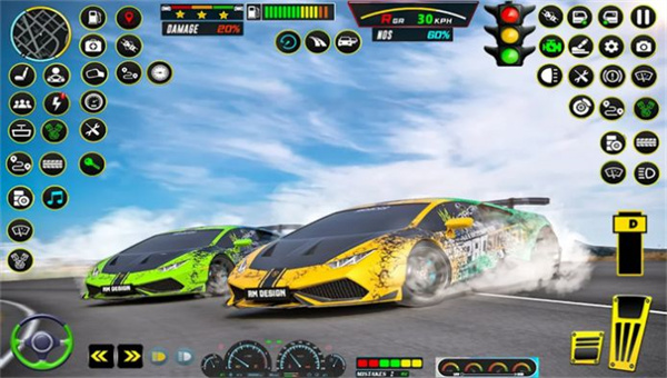 4.配以高品质的音效和音乐,使游戏者在赛车的世界中体验到高速冲刺和极速飞行的强烈刺激和快感;