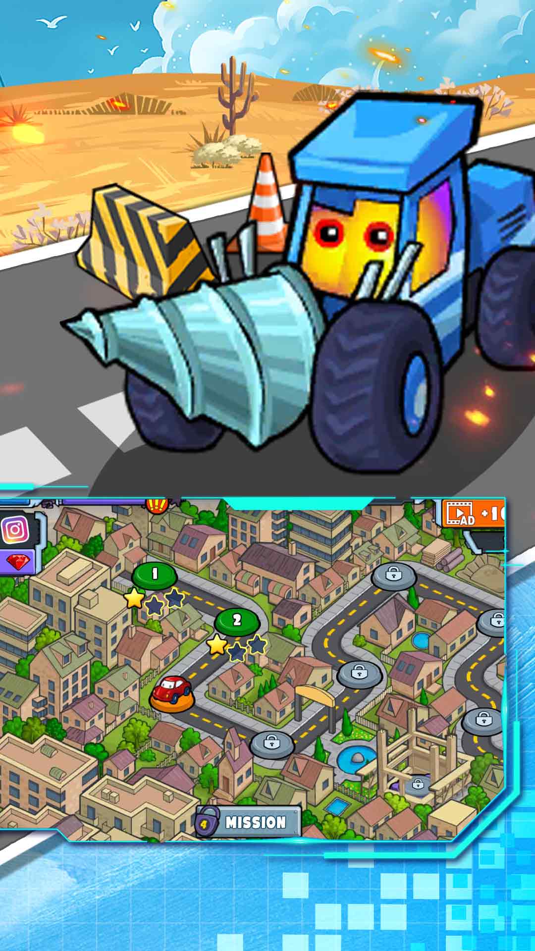 2、丰富多样的关卡和场景,多种车辆可供选择,并配备各种装备和道具,增加趣味性和策略性。
