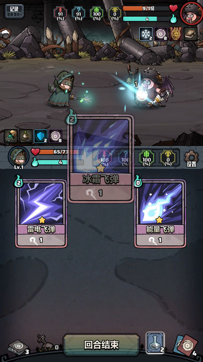 3.对战界面中,角色每个回合至多可获得十五点能量.每种不同类型的卡牌都需要消耗能量;