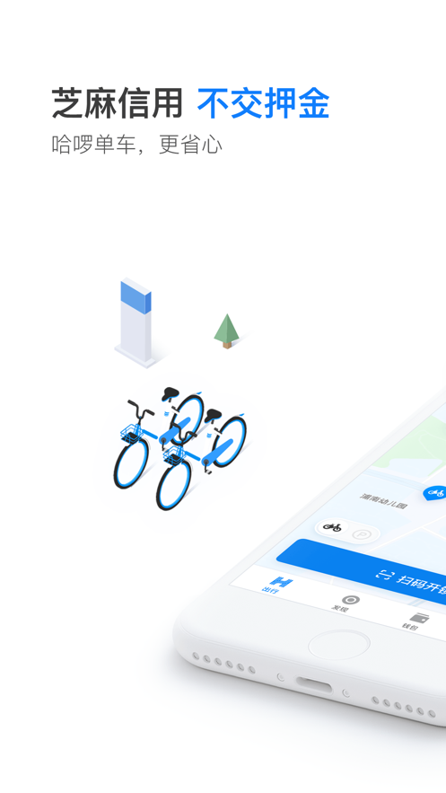 - 哈啰单车免押金,扫码用车极速开锁;