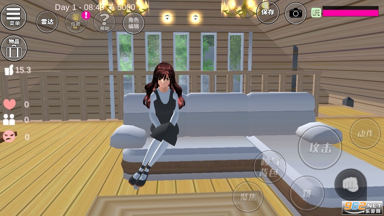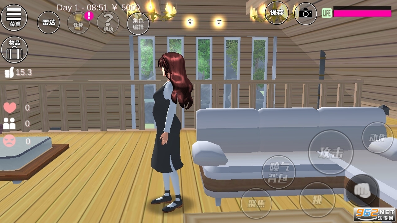 1.这是一款3D特征的清新模拟游戏,你可以开始校园玩法,这里还有浴室、楼梯、教室还有一个宏大的校园,欣赏和体验众多场景;
