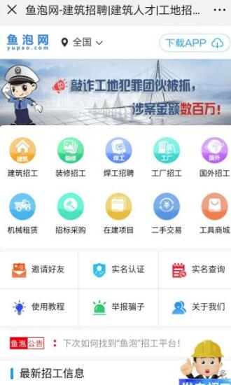 鱼泡网是一款在线招聘的App,这里有非常齐全的建筑、装修的招工服务,是一款为建筑工人打造的APP,让用户可以在线找到自己满意的工作!