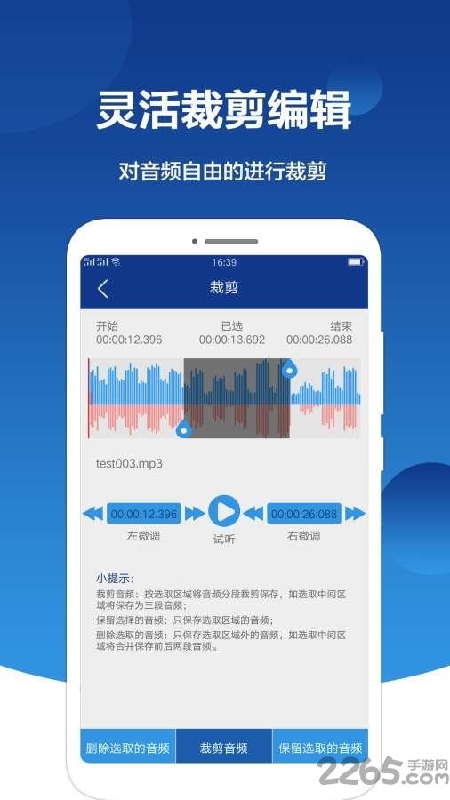4、可以自由的对音频内容进行微调的裁剪获取你需要的音频片段