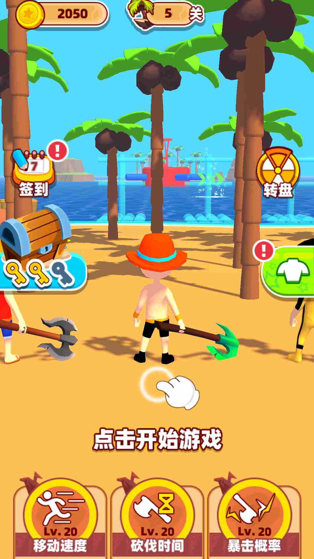 4、免费参加快乐岛比赛,使用各种工具快速砍柴,并尽快制作木筏到达目的地。
