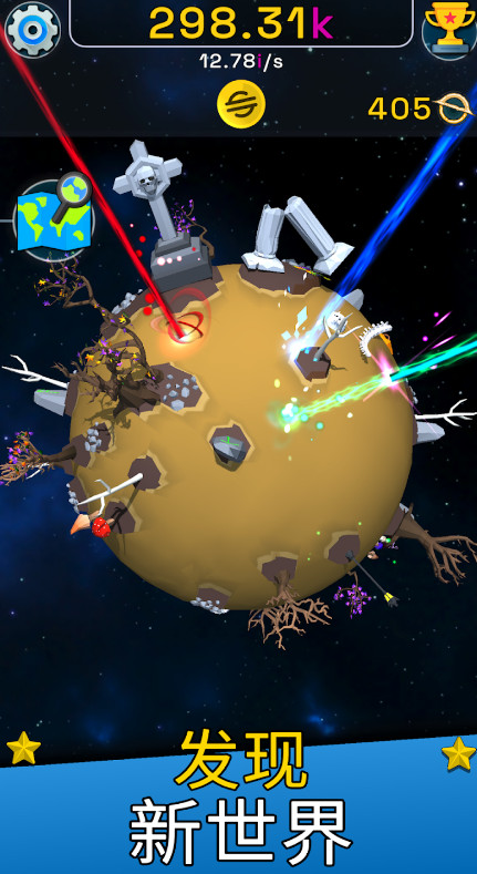 1只用紫色巨人摧毁星球即可开启隐藏星球。