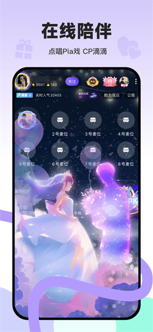 丰富场景:休闲时光,打开情咖,听主播唱歌、讲故事、聊日常,放松身心,享受专属happy time~