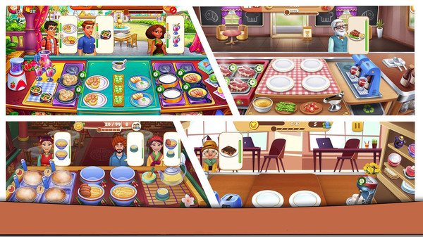 游戏以关卡挑战为过程,每一个关卡都有固定的任务,需要完成一定数量的顾客才能获得通关,并且能获得顾客的奖金和小费,这些金币可以用来到商店中购买更多的烹饪工具,让我们的厨房更加全面,能制作一些更加高级的食物。游戏循序渐进的让玩家体验烹饪的乐趣,特别是烹饪工具都需要玩家们自己赚钱购买,将大家的闯关积极性不断提升,使得我们都能在游戏中找到应有的乐趣。