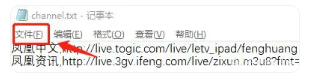 4、将txt文件编辑好以后,在菜单栏的文件里选择编码为“UTF-8”方式的“channel.txt”。