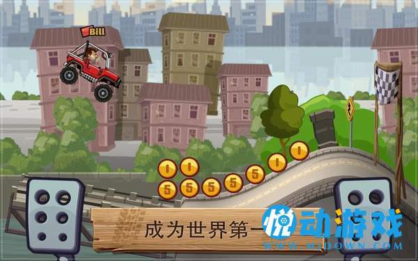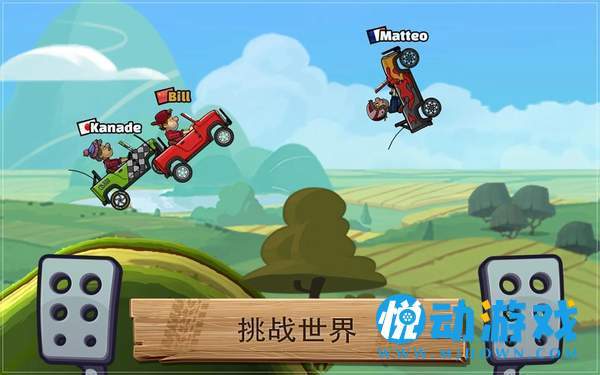 1、游戏的操作方式是非常的简单的,屏幕右下角的虚拟按键是油门,可以通过按压程度的不同,来给车子进行加速;屏幕左下方角的虚拟按键是刹车,可以对车子进行减速。这个按键还有一个非常大的功能,就是在我们的车子快要翻车的时候,松开油门,点击刹车,就可以矫正我们的车子,使车子不会翻。