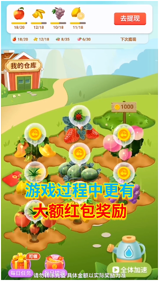 2、非常有趣的模拟经营,可以满足果树的需求,增加果树的产量,并提高其红包能力。