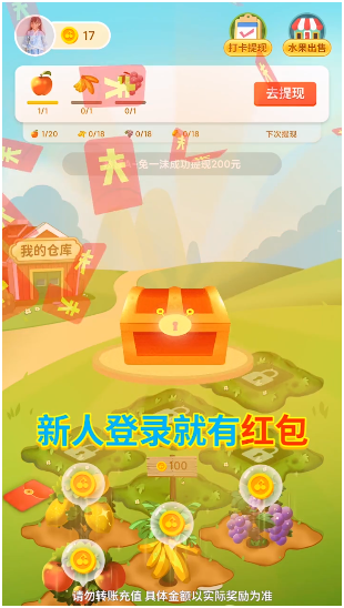 地主果园红包版是一款非常休闲的经营果园赚钱游戏,可以让你体验真实并且丰富的果农生活,开地、播种、收获,出售你的水果,让你的果园更加生机勃勃。远离城市的喧嚣与繁杂,享受宁静的田园生活,准备好成长为超级果农了么?