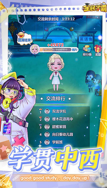 4、游戏以独特的经营学校为主要玩法展开,你需要认真经营,科学规划,系统的布局,这样才能打造全球超一流的现代校园!