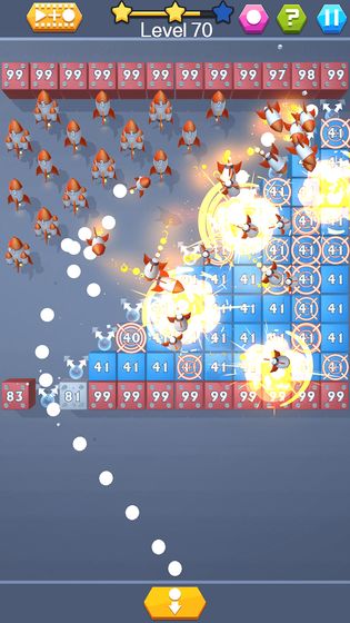 2.瞄准角度,点击屏幕,释放弹球,让它完成一击消除尽享闯关。