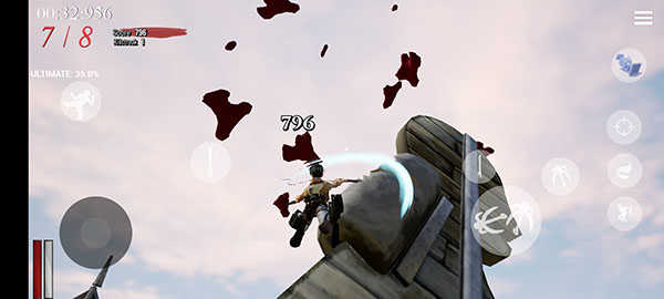 飞行移动,在这款游戏中你的主要移动方式是靠立体机动装置带来的飞行能力;