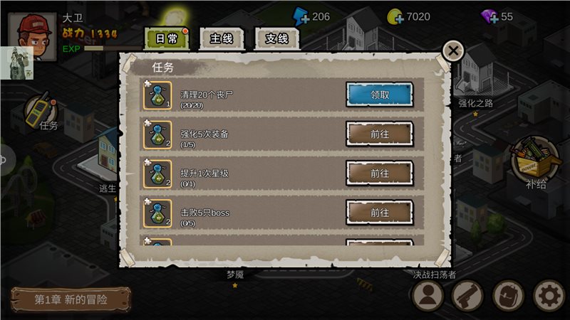 2、第二章第7关刷弹夹(求助警察局):从此时开始,玩家就可以重复刷2-7来获得大量弹夹了,手动刷关或扫荡刷关都可以,这一关玩家只要把第一层僵尸杀光就可以,第二层可以直接开门找炮哥帮打,弹夹是玩家闯关的资本,虽然关卡中玩家的弹夹只显示3个,但是实际可以把背包里所有弹夹用掉,只要舍得刷弹夹用弹夹,刷到3-3并不难。