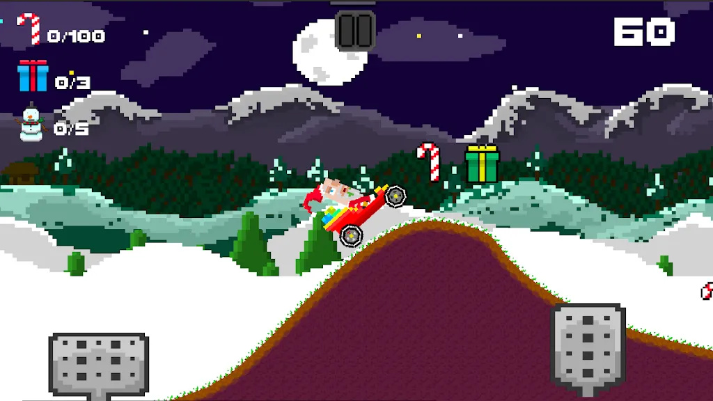 超快的圣诞老人游戏是一款非常有趣的像素横版风格的圣诞老人驾驶闯关游戏,在游戏中,在圣诞节开始你送礼物的快乐旅程。