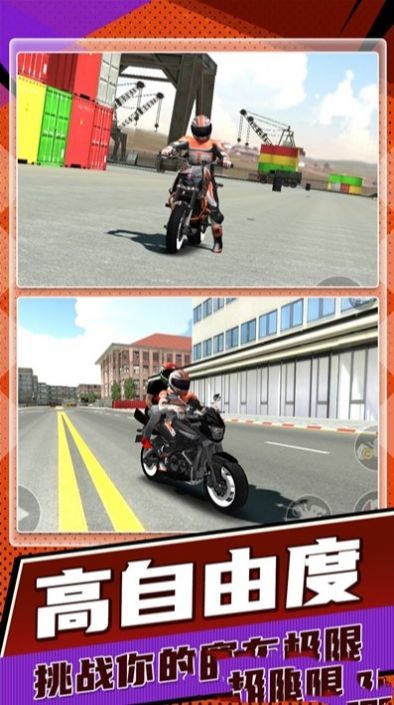 1、成为摩托车手,选择你钟爱的摩托车款式,从小型巡航车到高性能跑车,满足你的速度追求;