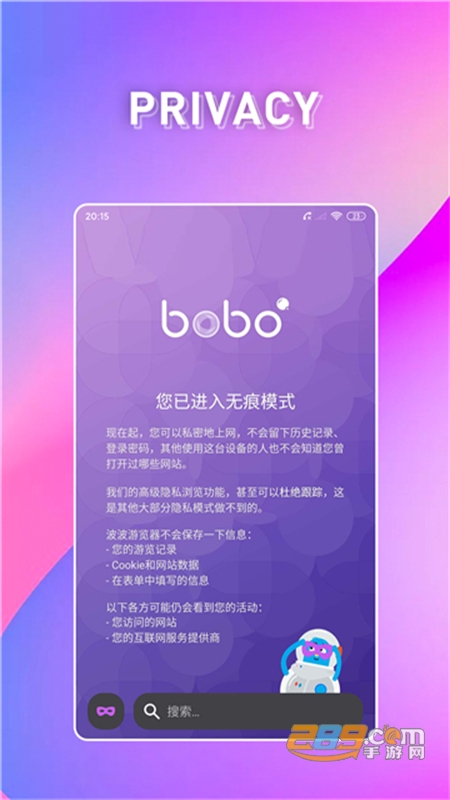 3、[隐私]支持隐私模式浏览,结合透明代理机制,可以提供更多的保护。
