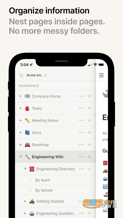 在页面内嵌套页面。不再有凌乱的文件夹。