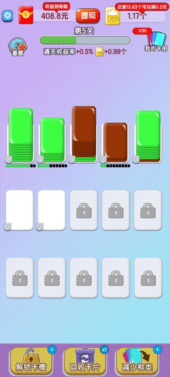 欢乐卡片是一款无比精彩的闯关游戏, 包含了很多不一样的卡片,通过合并相同数字的卡片来不断提升数字大小,最终达到更高的目标。同时可以回收各种卡片进行回路升级,赋予更加强大的功能,还等什么,快来下载吧