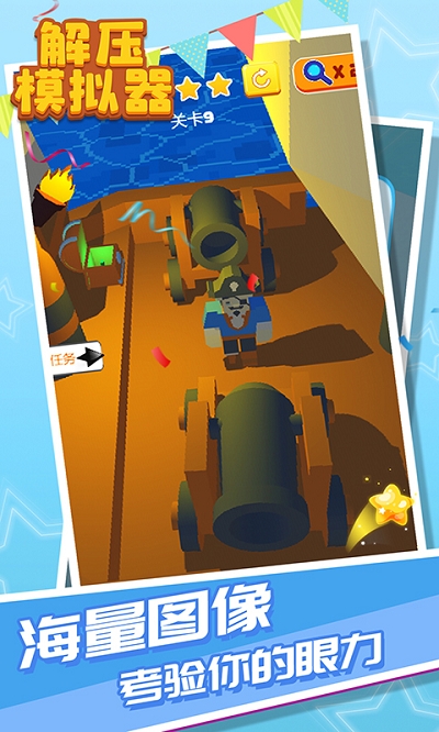 1、解压模拟器交互式模拟使闯关更轻松。操作非常简单。