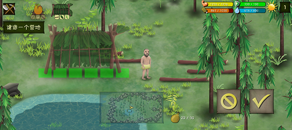 游戏刚一开始玩家们就需要先解决自身的食物短缺的问题,从一开始的出生地来看,玩家们附近能吃的有两种,第一个是青蛙。基本上属于遍地都是,玩家们要想抓住青蛙的话,可以捡取自身附近的石头来砸青蛙。