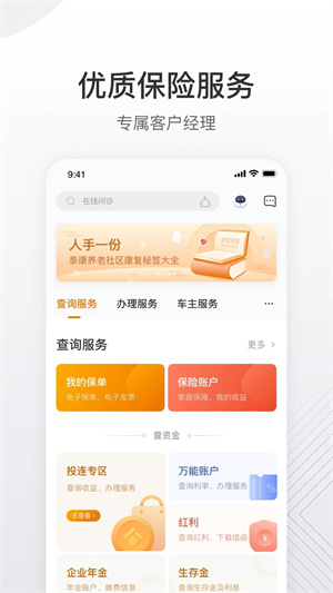泰康各子公司的保单、服务统一视图,您只要一个账号即可拥有;