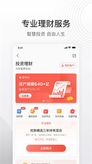 3、购买理财产品,让用户在管好自己财产的同时还能够获得一定的收益。