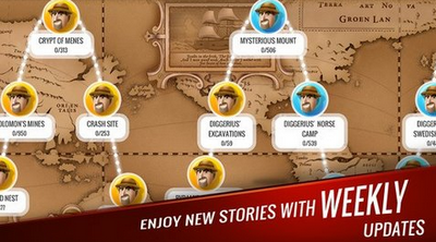 3,自己寻找宝藏,玩家还可以用获得的道具升级他们的营地,升级他们的工具,解锁更多的游戏关卡主题冒险。