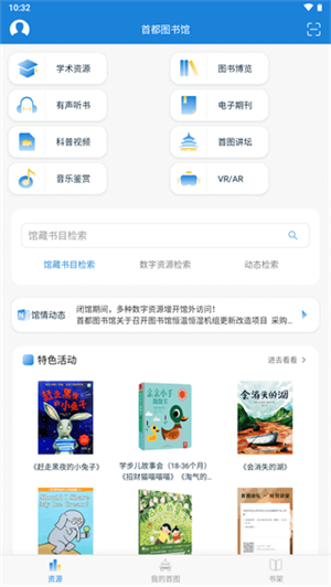 首都图书馆是一款官方开发的移动应用,专为北京地区的读者提供线上服务,该应用程序结合了实体图书馆资源与数字化服务,旨在提升用户的阅读体验和获取信息的便利性,用户可以在线阅读电子图书、电子期刊、电子报纸以及多媒体资料等丰富的数字资源库内容。