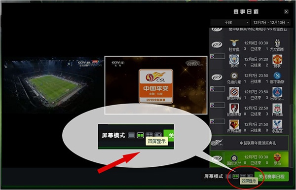 同时播放两场赛事视频,可用于同时播放两场半决赛赛事视频。