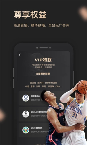 加入央视体育VIP会员,即可畅享免广告以及高清的赛事体验,后续还会陆续推出各种精彩的会员权益