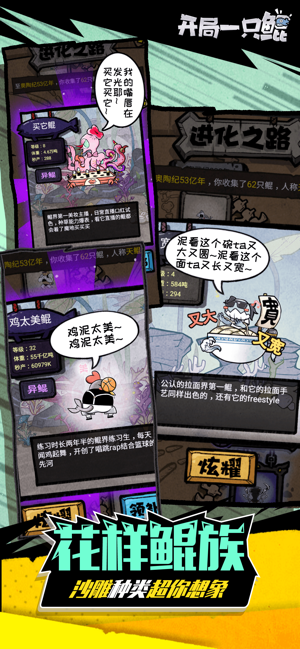 开局一只鲲是一款画风新奇的休闲育成类手游;