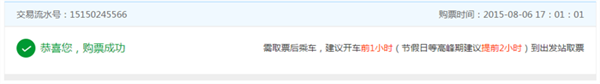 四、本平台提供的是联网车站在线售票服务,购票过程中可能会遇到网络故障、余票不足等异常情况,请购票旅客在完成支付后确认购票订单状态是否为[购票成功],以及查看联系人手机号码是否接收到购票成功的短信通知或推送消息并进行核对,没有收到短信或推送消息的旅客请自行记下取票号、取票密码,如遇到非正常情况,请及时与客服人员联系。
